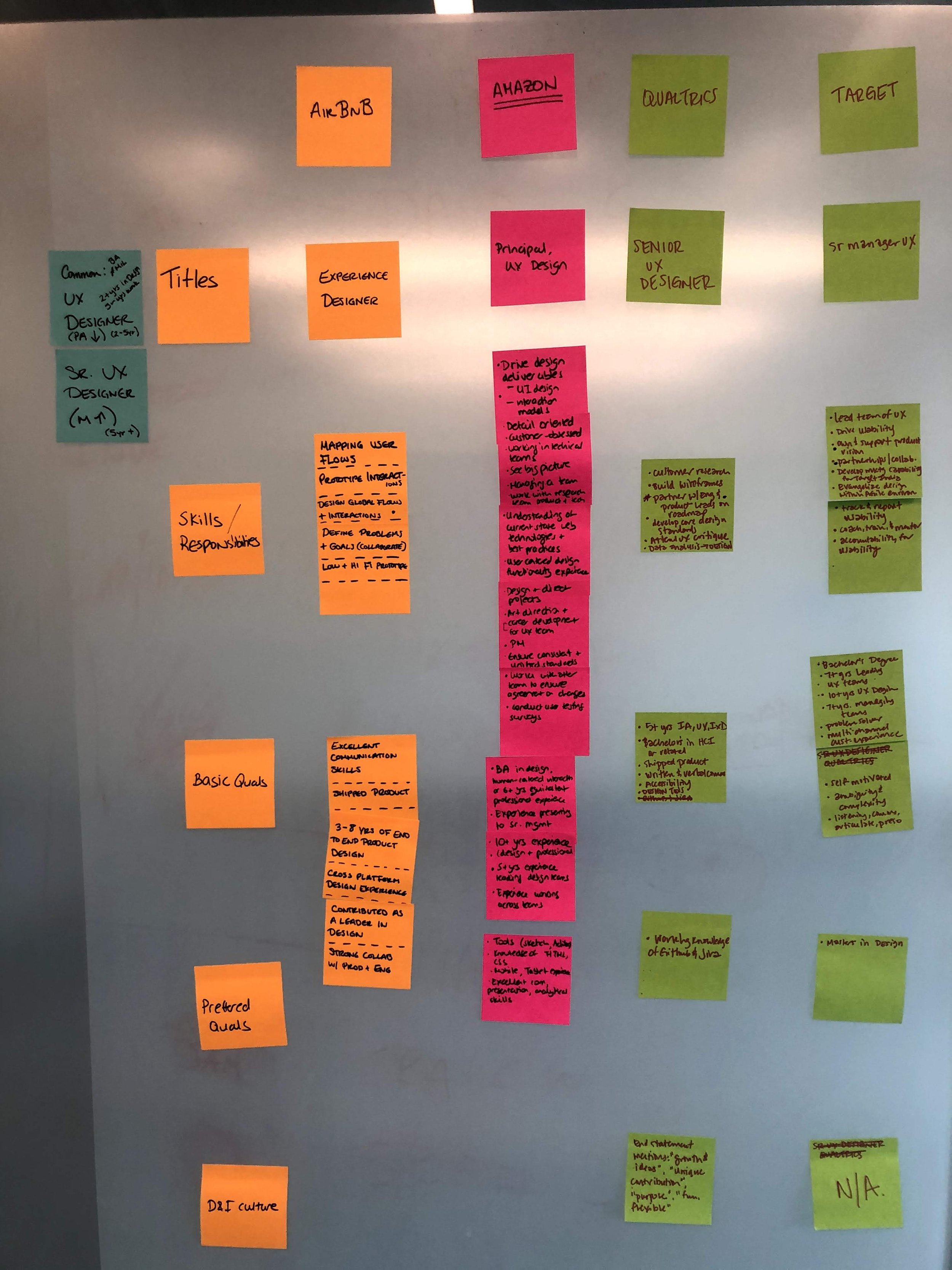 This effort aimed to broaden our appeal to a diverse applicant pool while still focusing on the specialized skills we sought. Additionally, we expanded our project scope to include interviews with designers at various levels and specialties, both internally and externally. This helped us gain a comprehensive understanding of the current landscape of experience design in the industry.